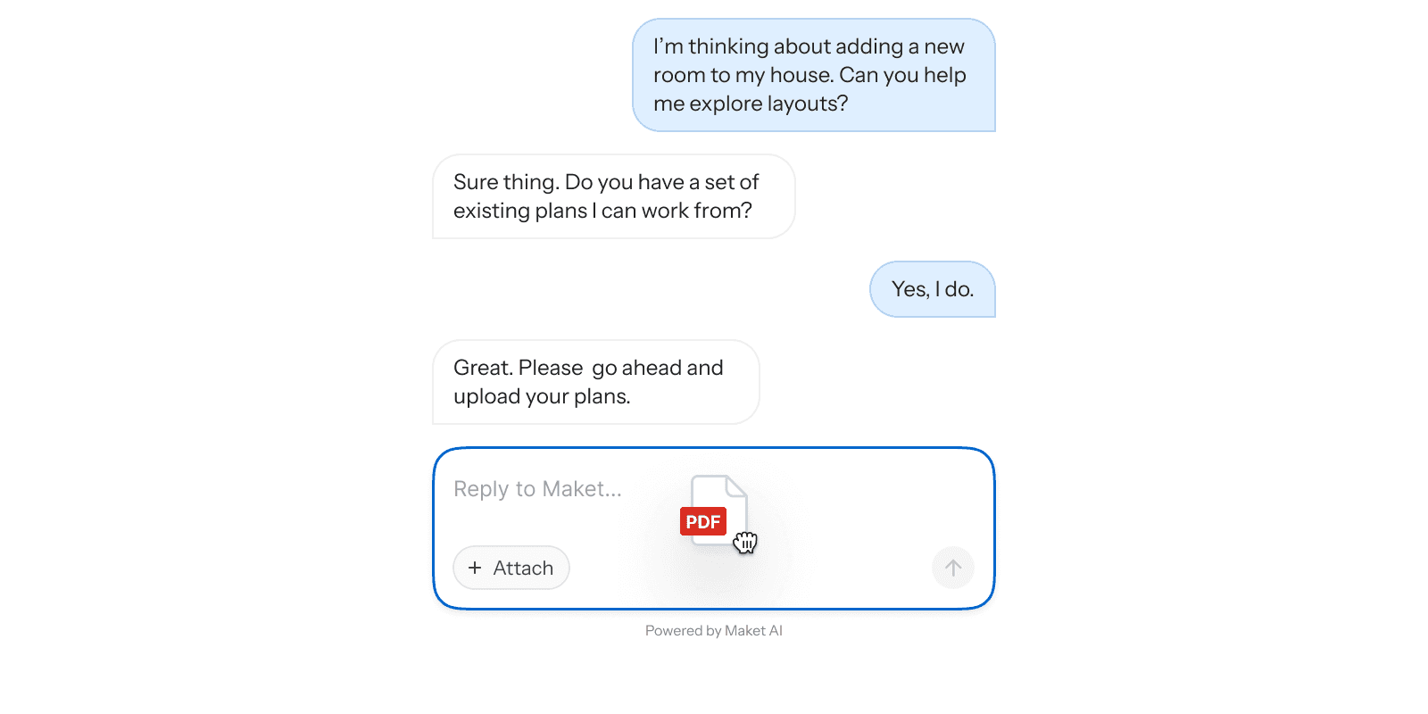 If you’re a builder or developer, you can also integrate your own floor plans and finishes directly into Maket, letting you and your customers explore and visualize plans according to your unique standards.